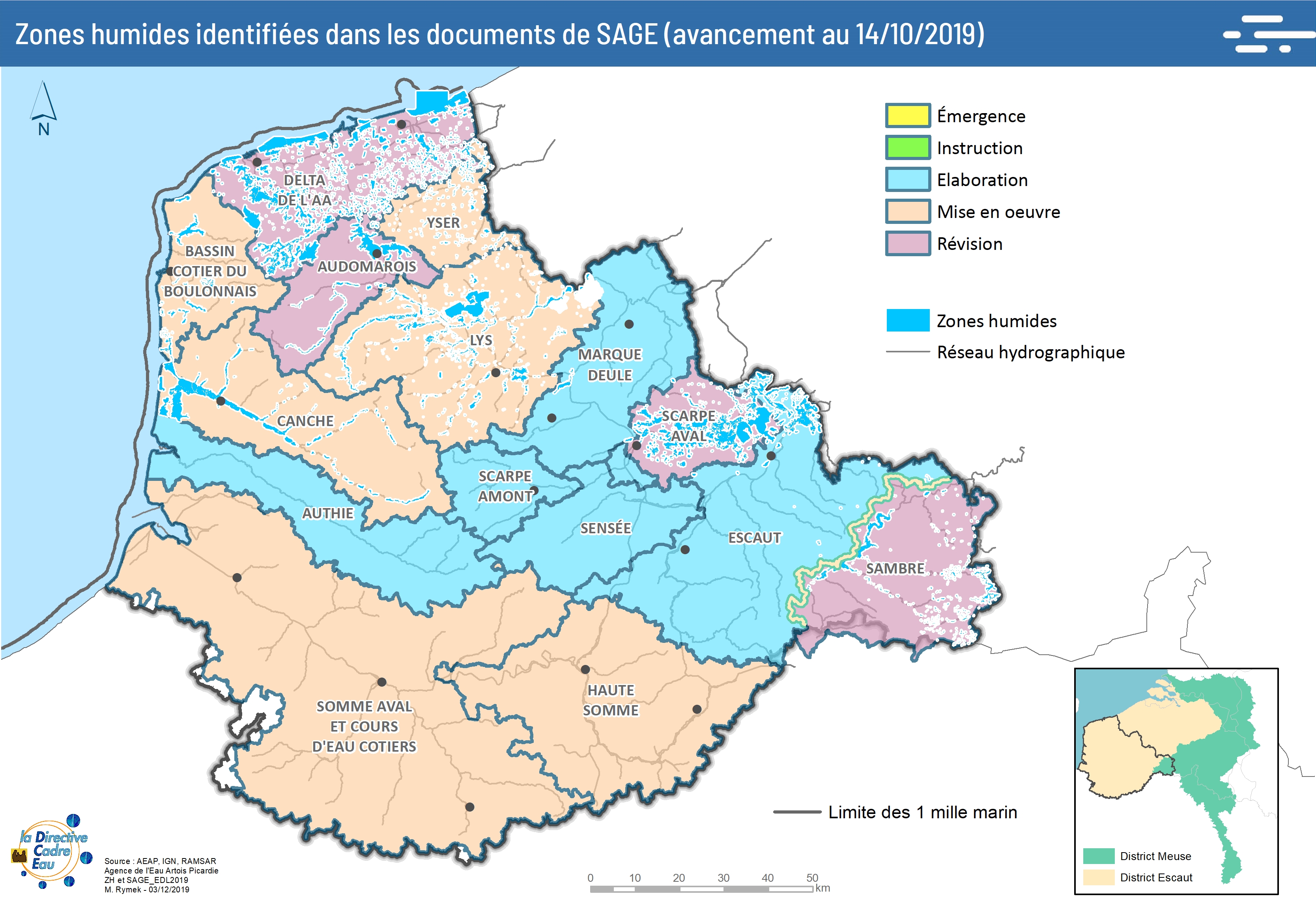Zones humides identifiées dans les documents de SAGE (avancement au 14/10/2019)