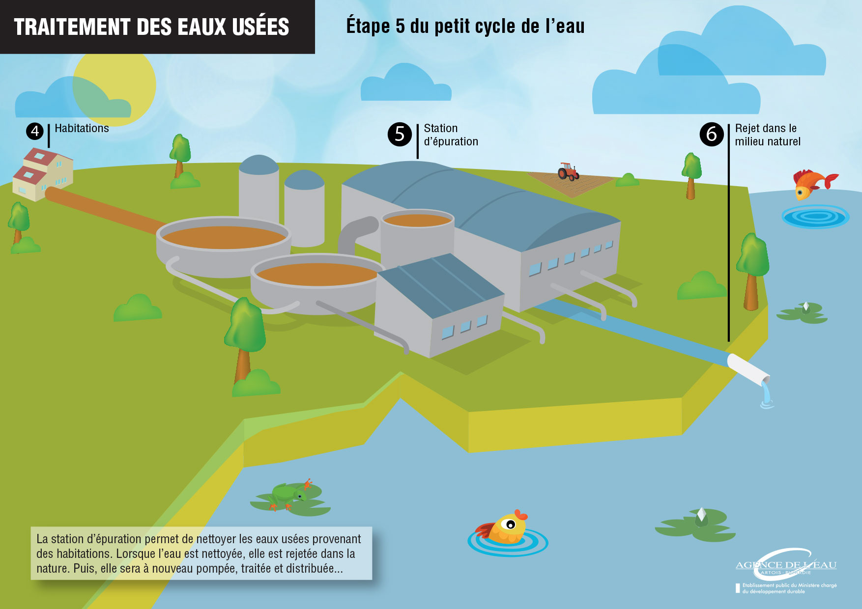 Le traitement des eaux usées - Etape 5 du petit cycle de l'eau