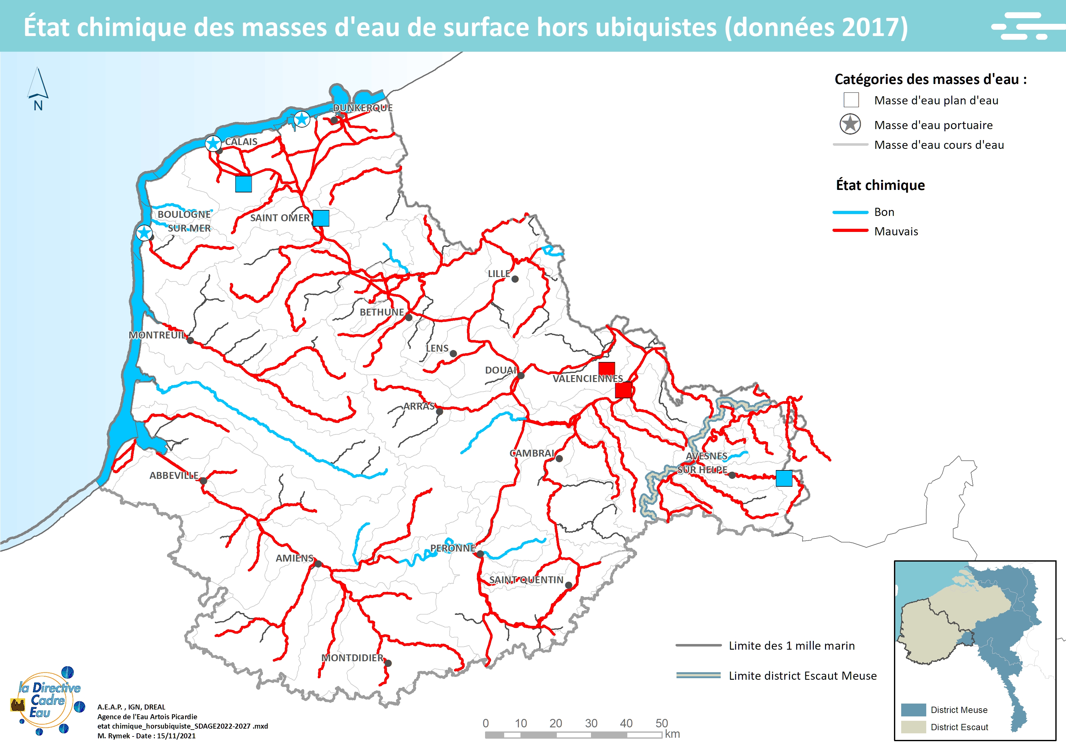 Cette carte issue du SDAGE 2022-2027 présente l'état chimique des masses d'eau de surface hors ubiquistes