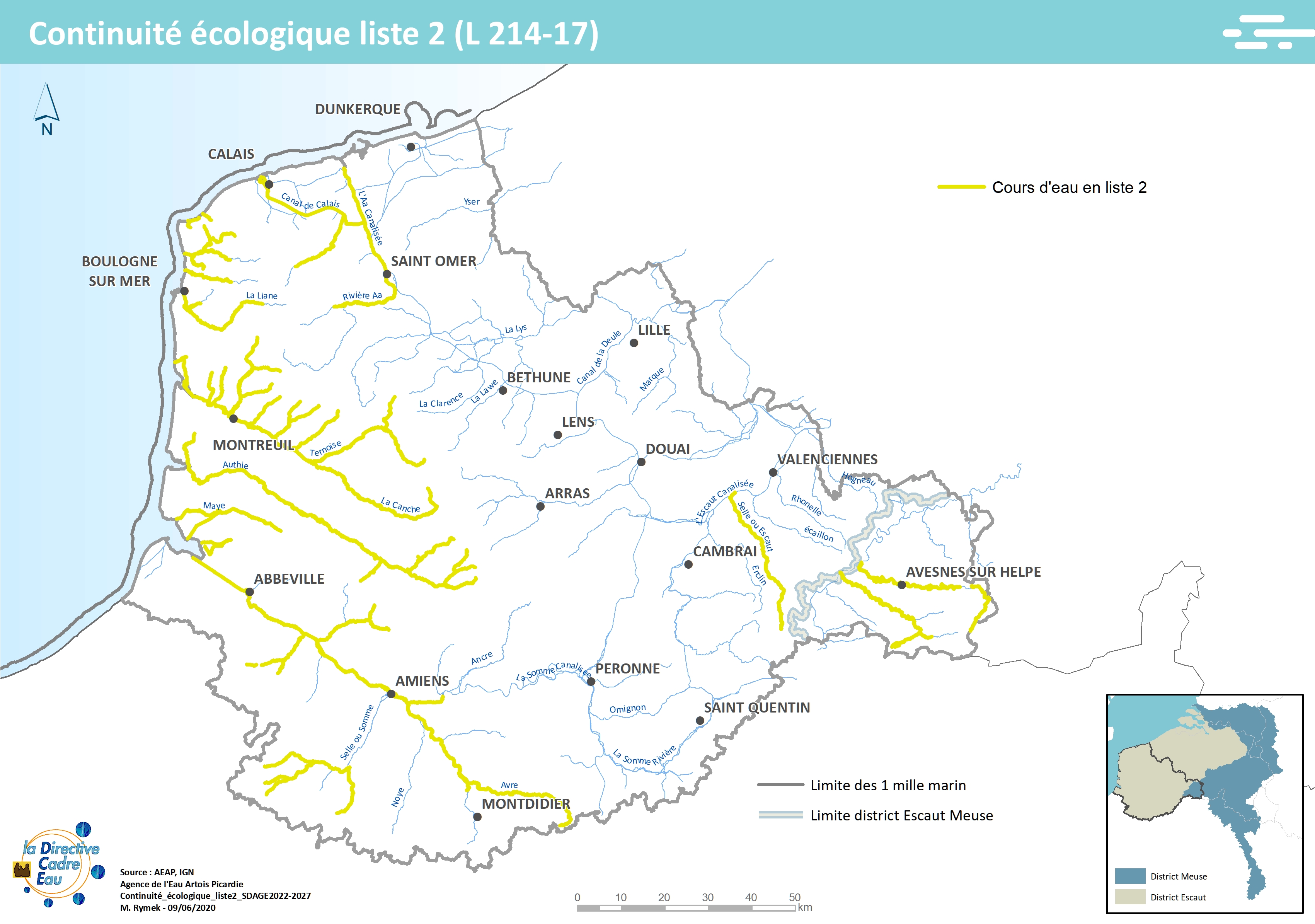 Cette carte issue du SDAGE 2022-2027 présente les cours d'eau en liste 2 selon l'article L214-17 du code de l'environnement