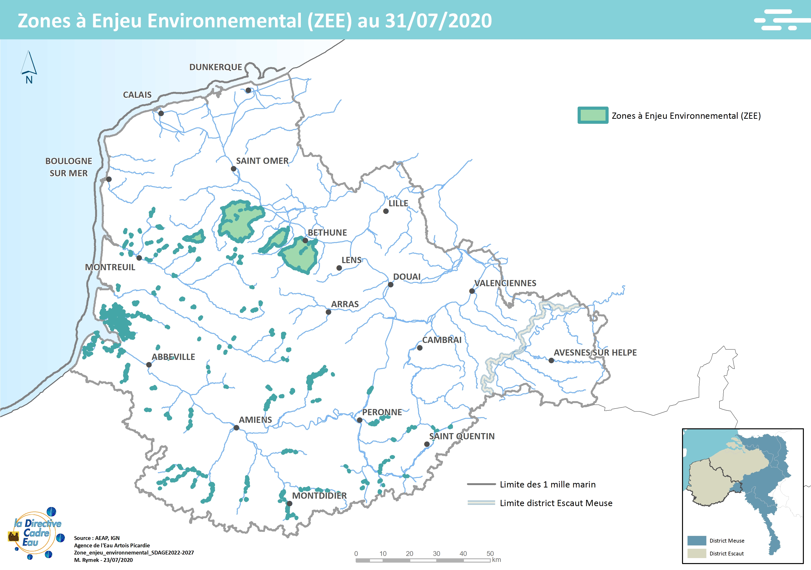 Cette carte issue du SDAGE 2022-2027 présente les Zones à Enjeu Environnemental. L’arrêté du 27 avril 2012 relatif aux modalités de l’exécution de la mission de contrôle des installations d’assainissement non collectif nécessite de délimiter des Zones à Enjeu Environnemental (ZEE).